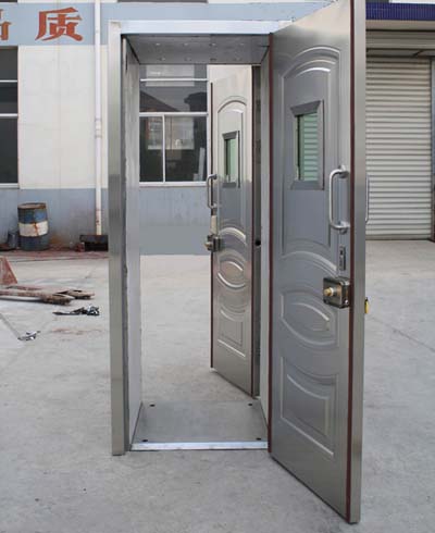 根據(jù) 銀發(fā)[1998]588號 人民銀行公安部《金融機構(gòu)營業(yè)場所、金庫安全防護暫行規(guī)定》“金融機構(gòu)的營業(yè)場所、柜臺通勤應(yīng)安裝具有聯(lián)動互鎖裝置的兩道門!钡囊(guī)定, 為滿足金融系統(tǒng)的防范要求,我公司自1999年初開始研制開發(fā)了系列防尾隨聯(lián)動互鎖安全門,該系列防尾隨聯(lián)動互鎖安全門分別應(yīng)用于銀行的營業(yè)間、儲蓄所、證券交易所等部門。我公司生產(chǎn)的防尾隨聯(lián)動門嚴格按照GA576-2005《防尾隨聯(lián)動互鎖安全門通用技術(shù)條件》生產(chǎn),并通過公安部安全與警用電子產(chǎn)品質(zhì)量檢測中心檢測。防尾隨聯(lián)動互鎖安全門有:帶防彈玻璃窺視窗的鋼質(zhì)外門和內(nèi)門、門框封閉箱體、防盜門專用鉸鏈、聯(lián)動門專用控制器、刷卡機、聯(lián)動門專用電動鎖、多芯控制電纜等組成。